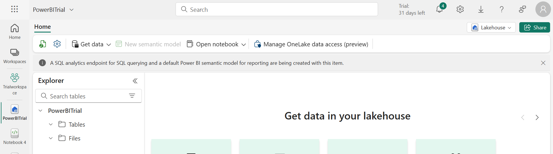Once you’ve established a new Lakehouse, it’s essential to create at least one delta table to enable Direct Lake to access specific data. Direct Lake has the capability to read files formatted in parquet.