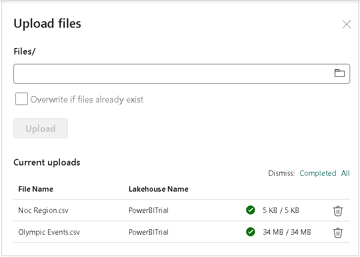 • The files have been uploaded. Here, you have the option to choose to overwrite the existing file or delete it if mistakenly loaded.