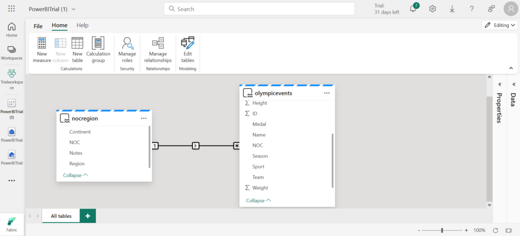 Once you’ve finished establishing relationships and implementing DAX measures, you can move on to creating reports.