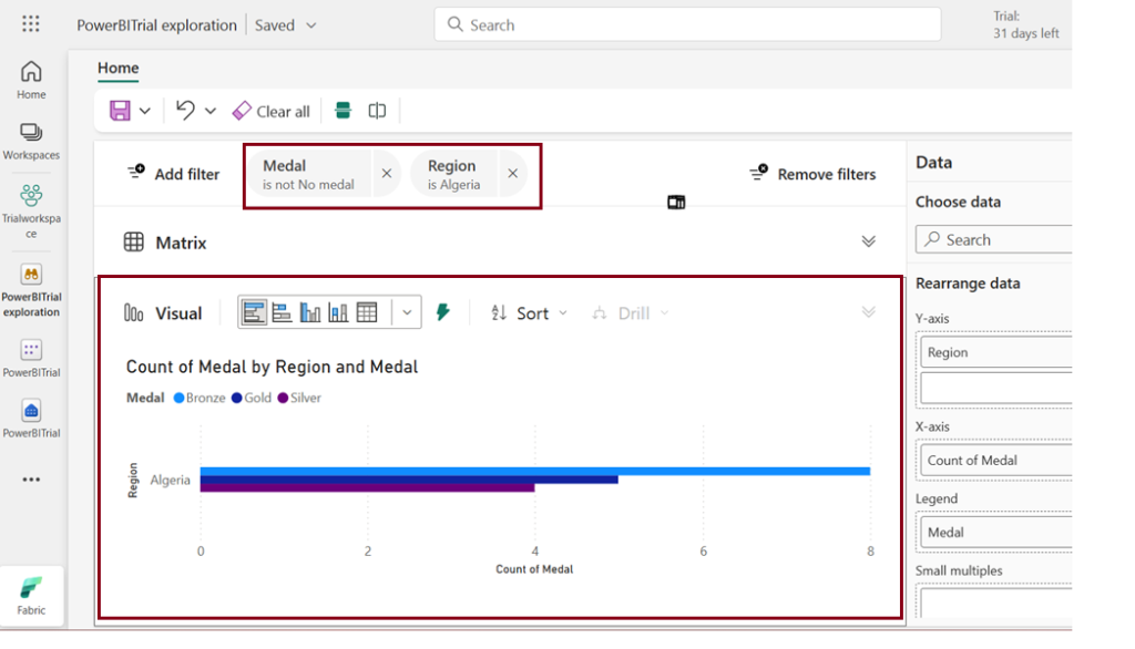 • You have the ability to add or remove filters and explore the data in the default matrix format.