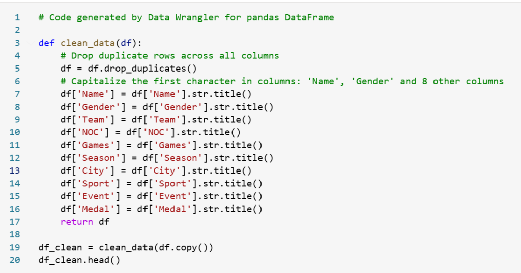 • Launch Data Wrangler for the dataframe. Here i choosed cleaned dataframe from the step above “df_clean”