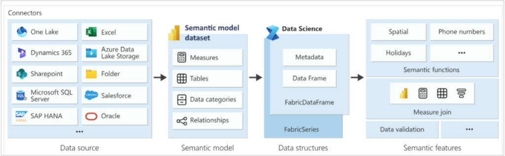 • Integration with Established Tools – Semantic Link seamlessly integrates with established data science tools and frameworks, including notebooks, Spark, MLflow, and AutoML.