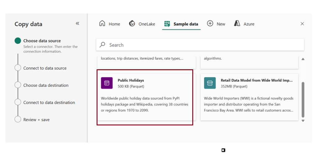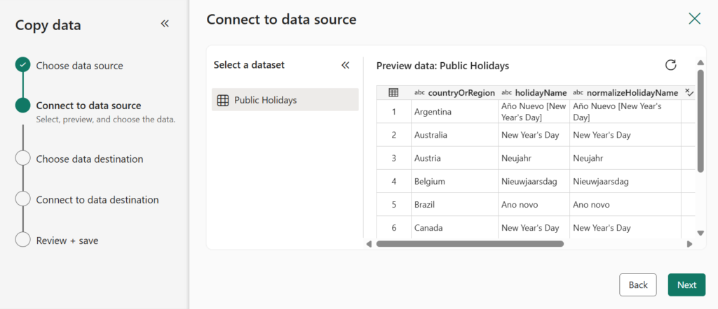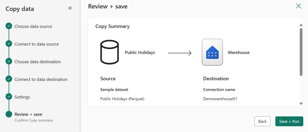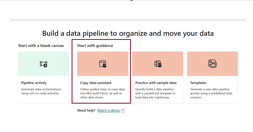 The Copy Data Assistant in Microsoft Fabric Pipeline is a guided, user-friendly tool that simplifies the process of creating a Copy Data activity. It provides a step-by-step interface that helps users configure and set up data transfer tasks between different data stores.
