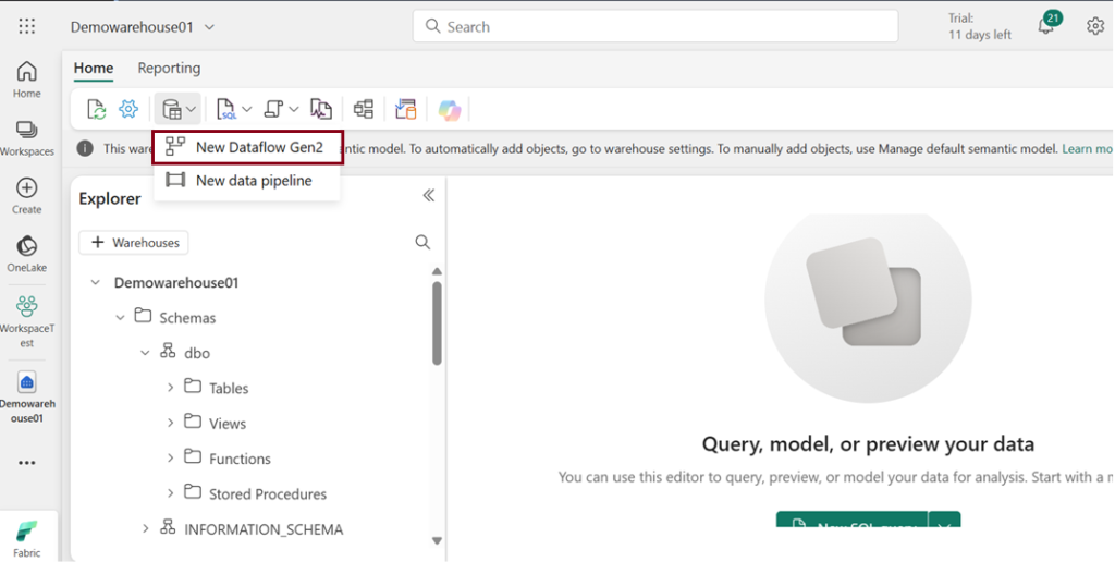Method 3: Use “New Dataflow Gen2” to load data into a warehouse.