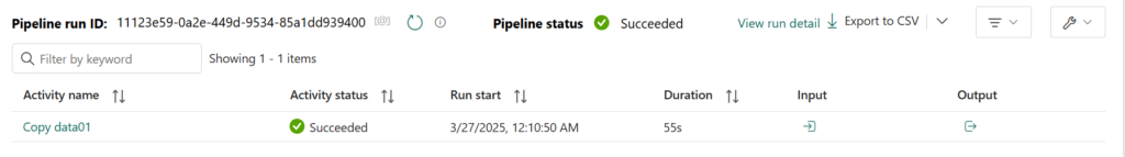 Now the pipeline succeeded and let’s check for the loaded table data in the destination i.e., Warehouse.